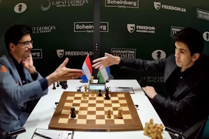 Sindarov looked frighteningly strong today as he set Praggnanandhaa problems he couldn't handle in a variation he himself chose, the distant chasers Anish Giri and Fabiano Caruana both drew. The women's event is led by Vaishali who drew with Anna Muzychuk, six of the eight players could still realistically win this event.